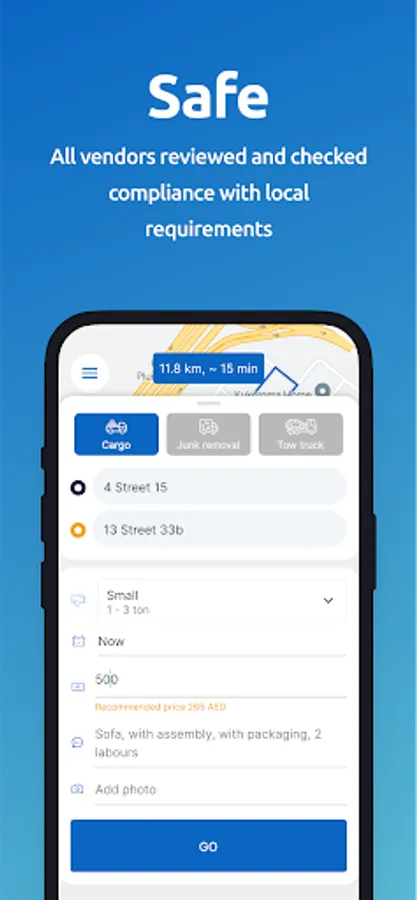 Carriers can be junk removal, cargo, or tow-truck. The shippers can place orders for the required carrier by providing some information.
