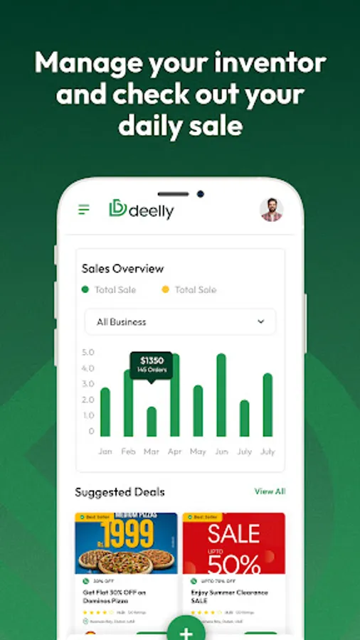 • Deelly app allows merchants to access their accounts and add deals to their related stores. Also, they can see the sales statistics of their business.