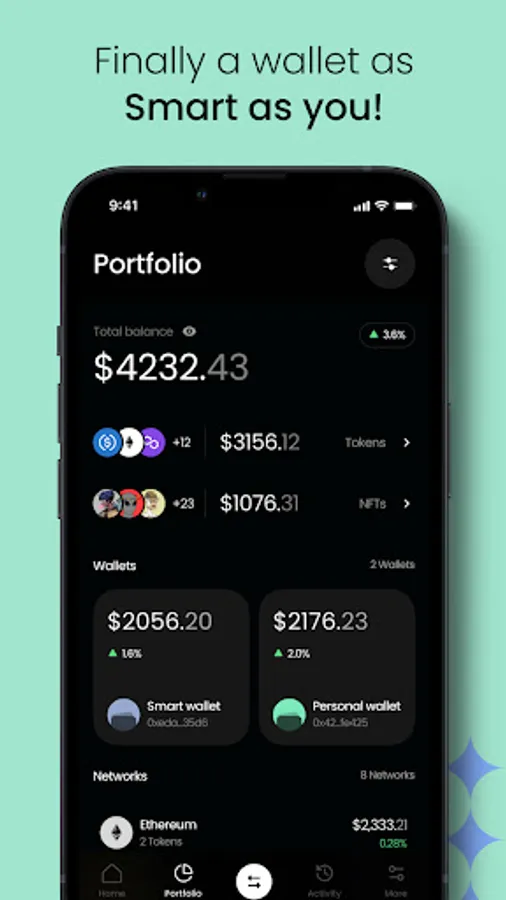 With Obvious Smart wallet, pay gas in a token of your choice and approve/sign transactions with a single click. Upgrade your current wallet to experience a new level of security, convenience and flexibility on your mobile.