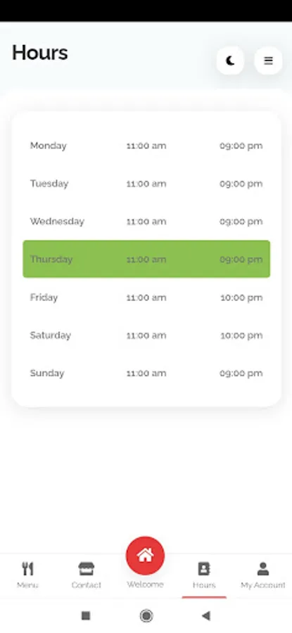 Receive loyalty points. Use points towards future orders. Mark your order as favorite and see them in your profile. Re-order from your order history or favorite orders with a simple click. Use the app in night and day mode