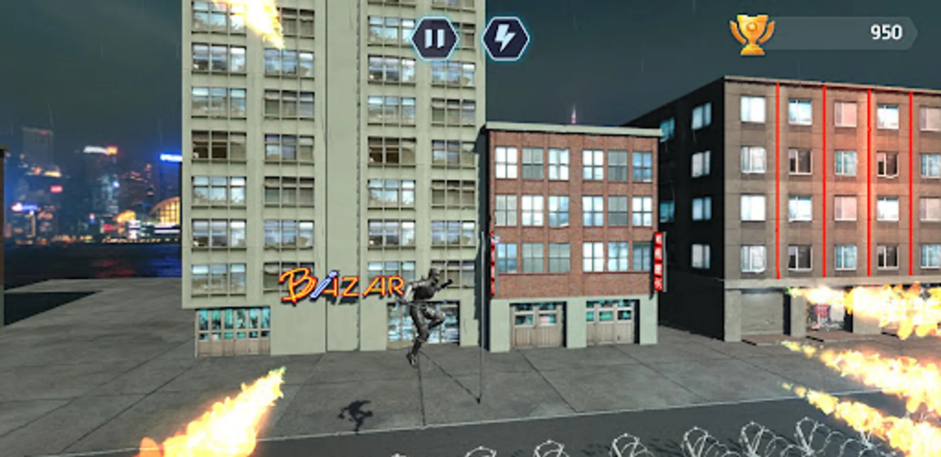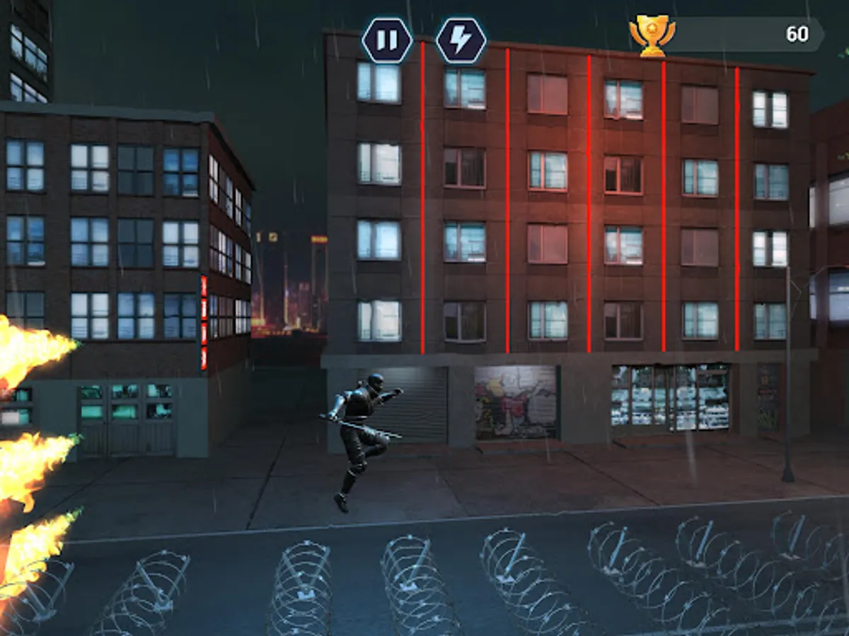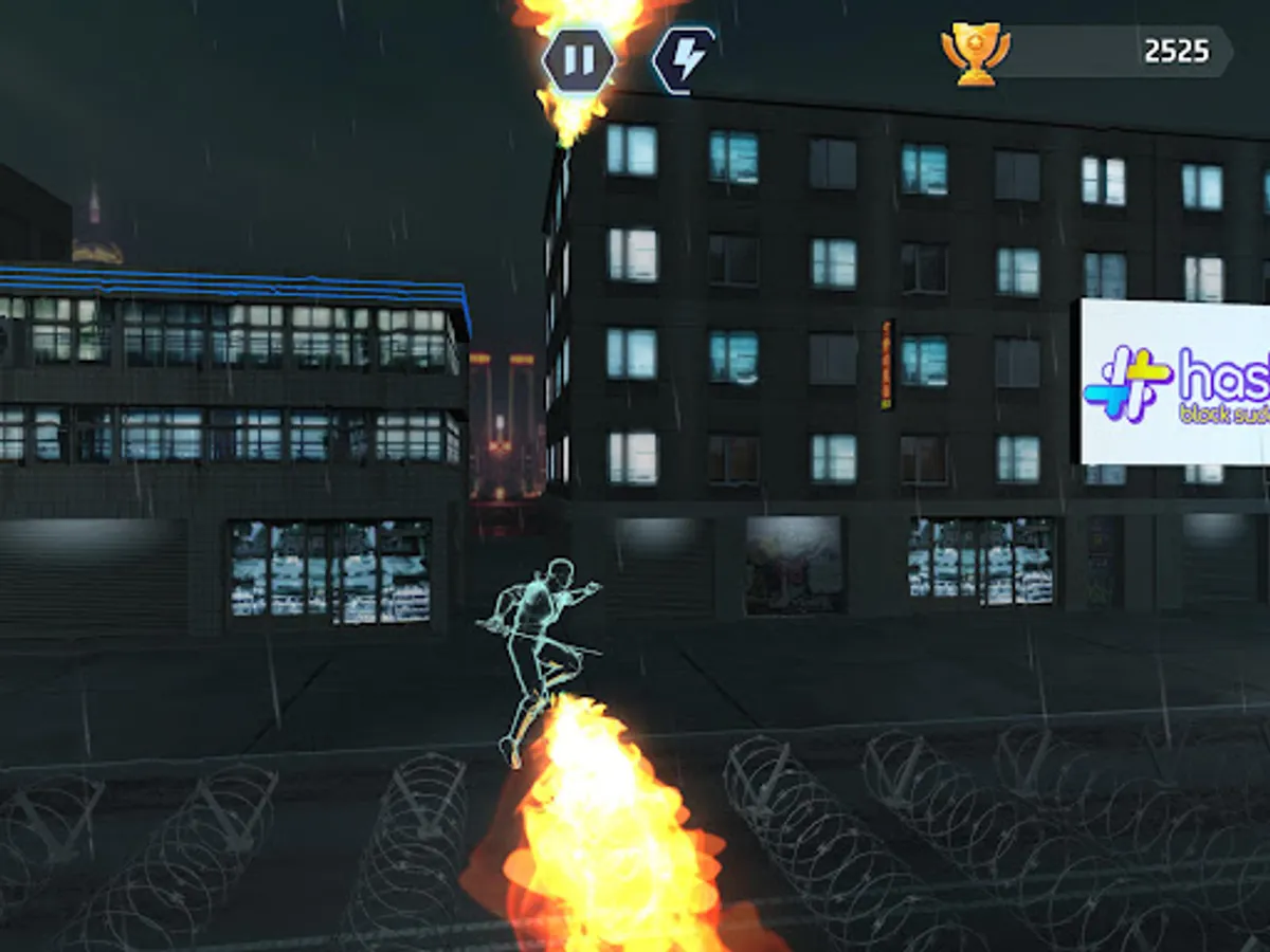 In Ninjounce, you take control of a Ninja that must navigate through a variety of fire-based obstacles. The controls are fairly easy to understand: you simply tap the screen to cause the Ninja to jounce in an effort to pass through the fire strewn across its route. The game ends when you hit the fire or the ground. You can choose whether you want to play with a day/night background. It won't be simple at all. It will be difficult to earn more points, as it is quite challenging to keep up a continuous rhythm of jouncing. In actuality, it will take a lot of practice before you start succeeding and the game stops being so defeating. You will notice minute variations that add to the game's intrigue after each crash and restart.