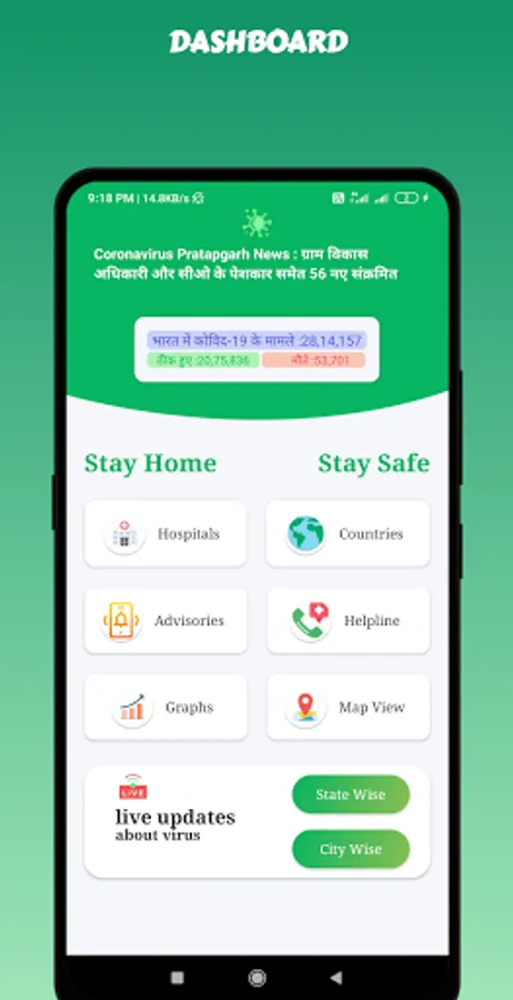 By using this app you can get the information of spreading virus with in a country and its states