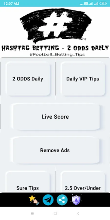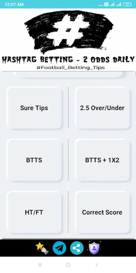 Hashtag Betting - 2 odds daily free Football Betting tips and predictions app offer best combination of possible 2 odds daily like Over/Under Goals, BTTS - Both team to score, Halftime/Fulltime and 1X2- WIN DRAW WIN with Live score button.