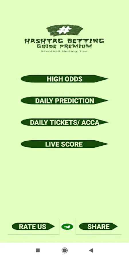 Hashtag Betting Guide Premium free Football Betting tips and predictions app offer best combination of possible 2 odds daily like Over/Under Goals, BTTS - Both team to score, Halftime/Fulltime and 1X2- WIN DRAW WIN with Live score button.