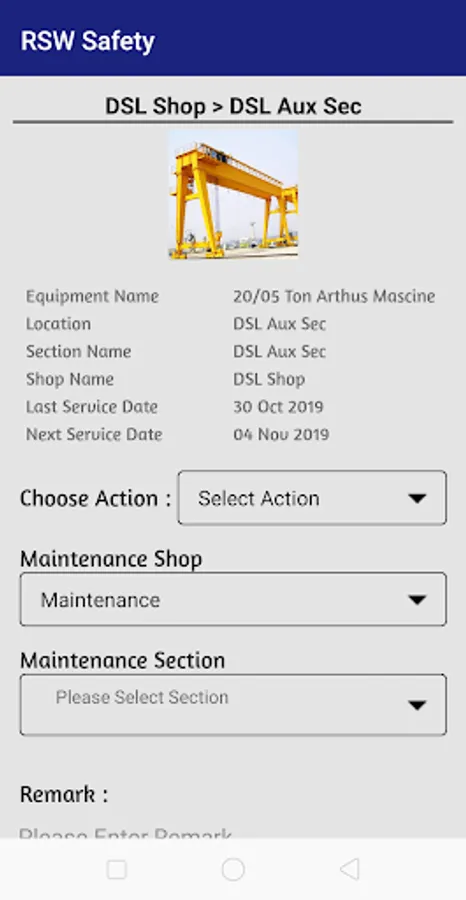 * This app essentially allows users to check and get alerts on scheduled maintenance checks, mark breakdowns, ticket management and maintaining healthy status of heavy machinery and tools.