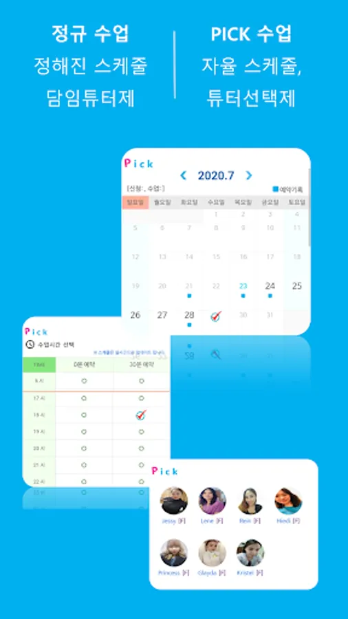 In the PICK class, topics-class schedule-tutors are selected and taught autonomously.