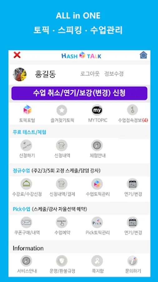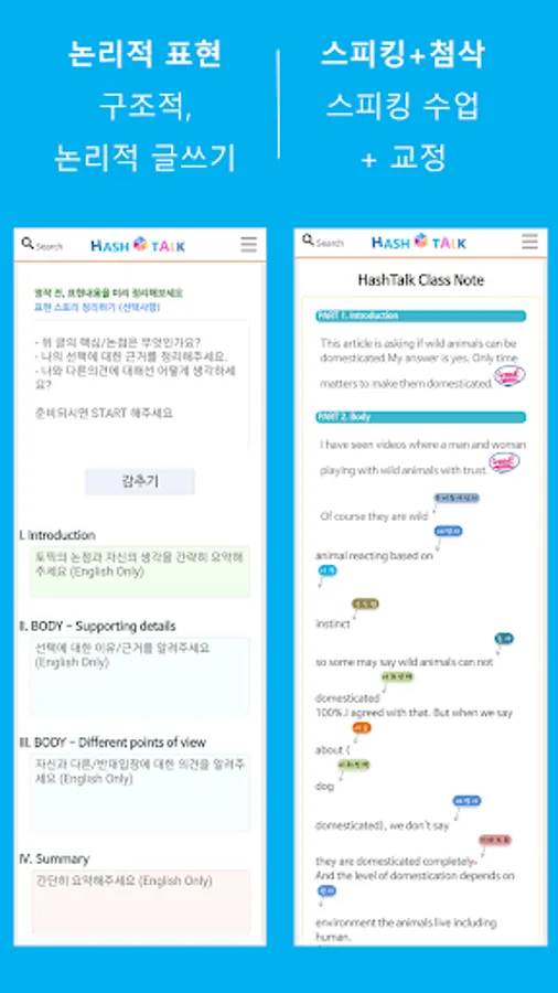 It is a service that receives logical WRITING-SPEAKING and CORRECTION on topics selected by users, topics of interest to users, among various topics updated daily/weekly.