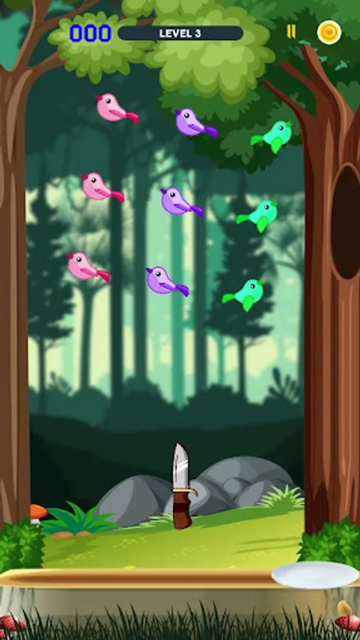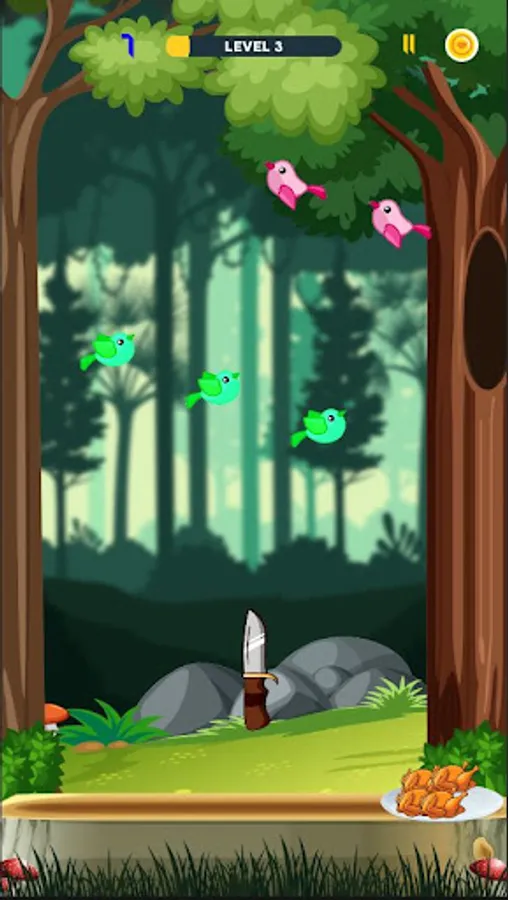 knife hunting is an amazing game for knife hunt lovers. you tab on screen to shoot knife and when knife hits a bird flying up on the screen you get the fried bar b q. you can choose different knifes in customize sections. you get new knife for coins you have earned by shooting birds.