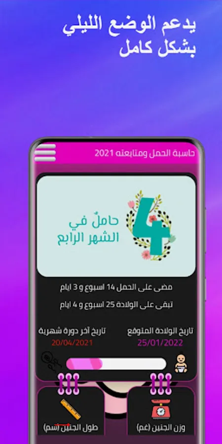 Follow your pregnancy and the growth of your fetus in a beautiful and simple way on a daily, weekly, accurate basis