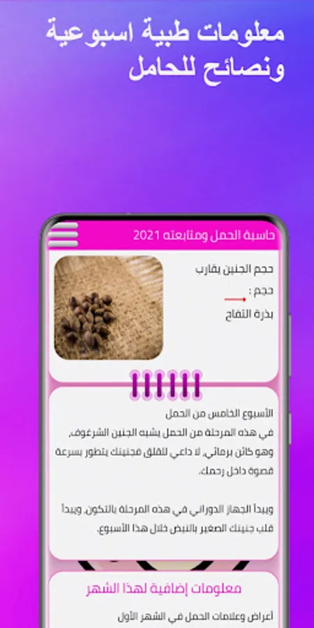 - In every week of the pregnancy, the pregnant woman can view everything related to pregnancy information, whether about the fetus or the pregnant woman.