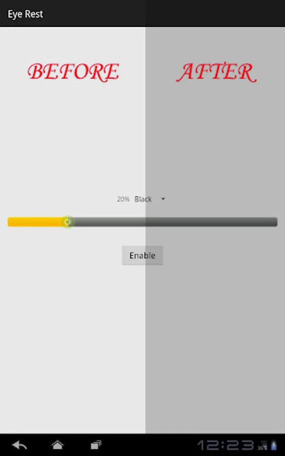 EyeRest for Android is here to solve this issue. It will reduce your screen brightness even more (beyond your device's standard brightness settings), in order to provide you with the best possible experience while browsing the web or checking your social networks at night.