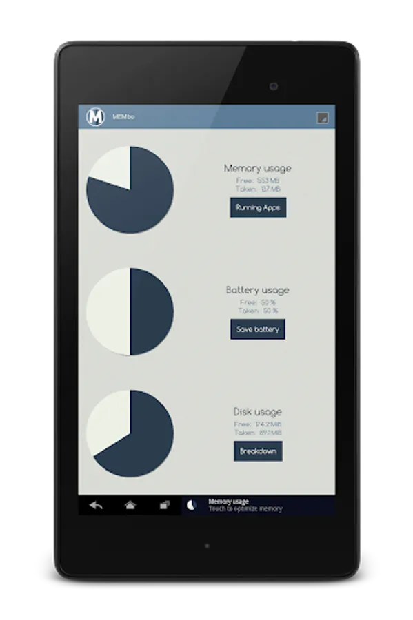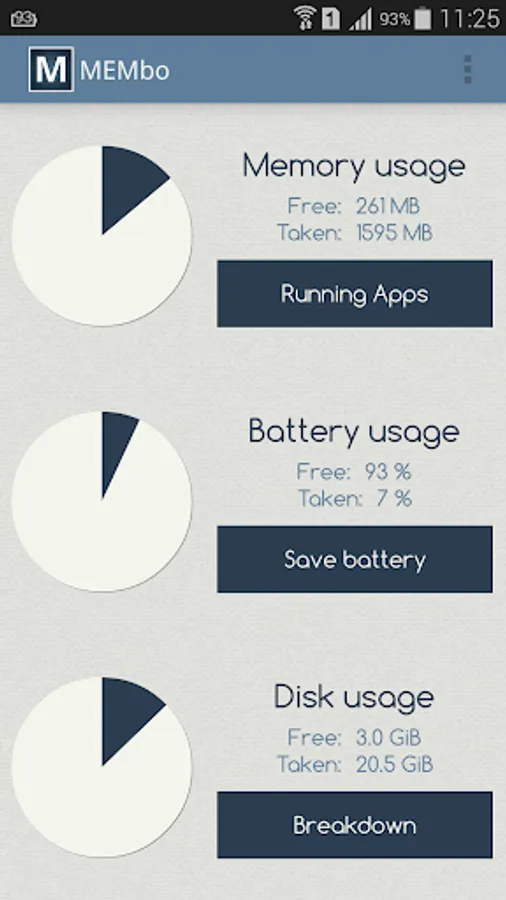 *** No background services and annoying constant notifications. Just open MEMbo whenever you need it. It uses zero memory in idle state.