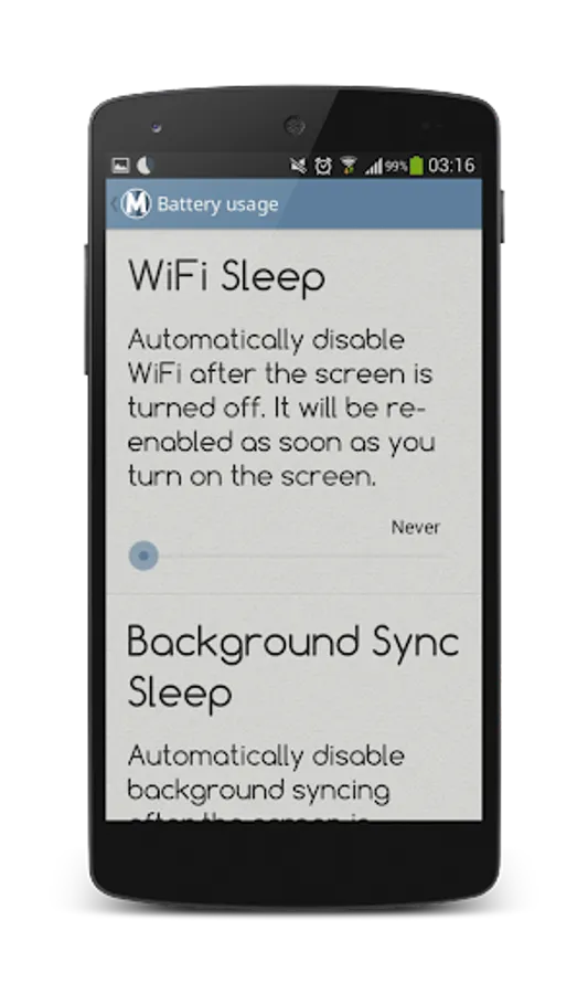 *** Prolongs battery life. Background services can use a lot of juice from your phone's battery. By closing them down using MEMbo you make sure that your battery lasts longer.