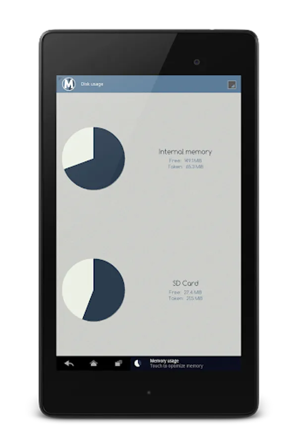 *** Overview of the available free and taken space in your device's internal memory and SD card.