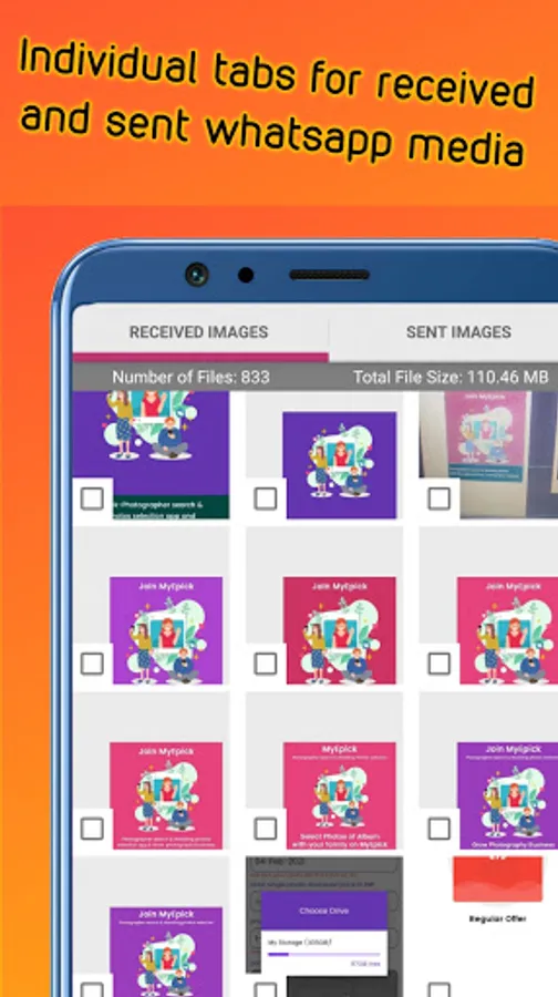 Cleaner for WhatsApp works as explorer for whatsapp and show the media file in different categories like images, videos, audios, documents, voices you can explore it separately. Sent and received files views differently which helps you to explore and delete the specific unwanted files.