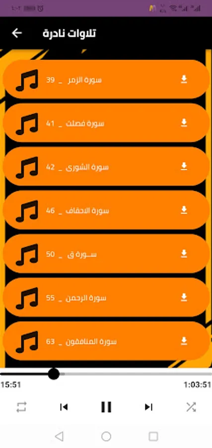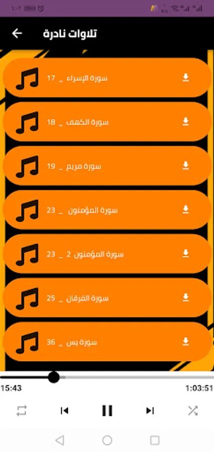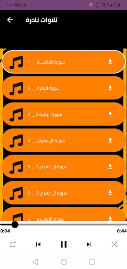The Sheikh Hassan Idris Mahmoud application without the net allows you to listen and download the Noble Qur’an with the voice of Sheikh Hassan Idris Mahmoud Al-Sudani, and you can download the Noble Qur’an to your mobile phone easily and conveniently through the application of the Noble Qur’an with the voice of Sheikh Hassan Idris