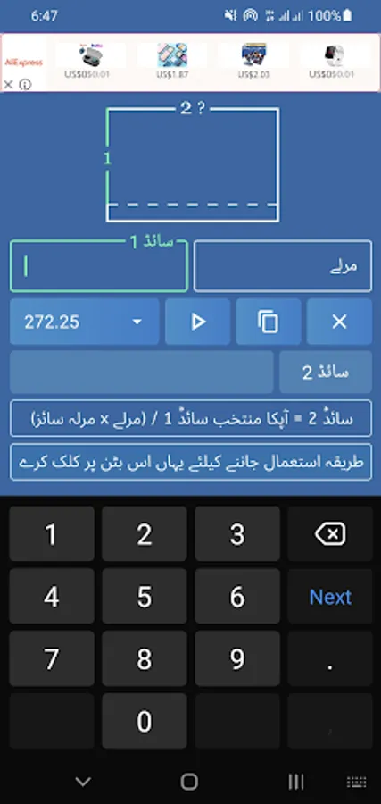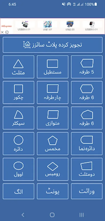 With this app, you can find the area in three units like feet, marla and karam for fifteen different jugs like triangle, rectangle, quadrilateral, quadrilateral, parallelogram, rhombus, sector, ellipse, circle, rhombus, pentagon, six One sided, six sided two, circular, isosceles. Division of inheritance, along with change of type of unit such as marla, karam, metre, kanal, foot, jarib, acre and alienation from one place to another.