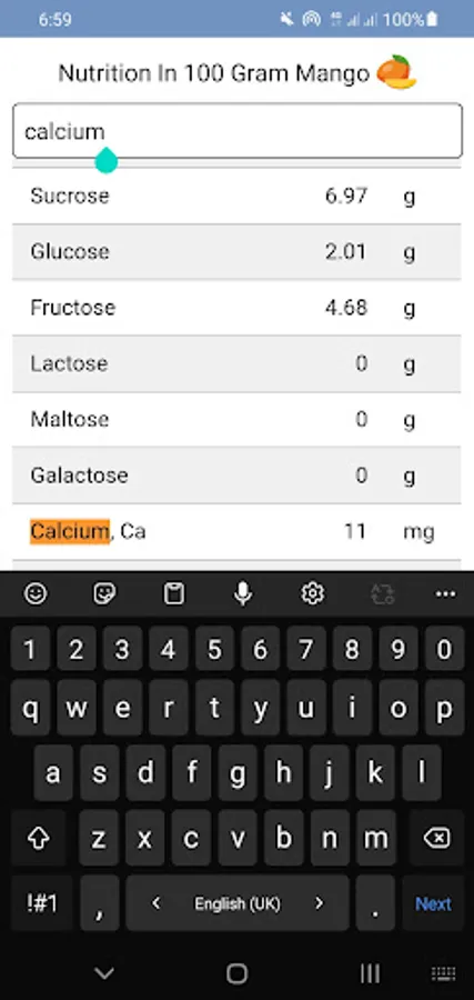 This is a fruits nutritional values app where you can check the nutrition values of different fruits, values, including Calories, Carbohydrates, Sugars, Fiber, Fat, Protein, Vitamin C, and Potassium.