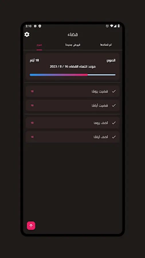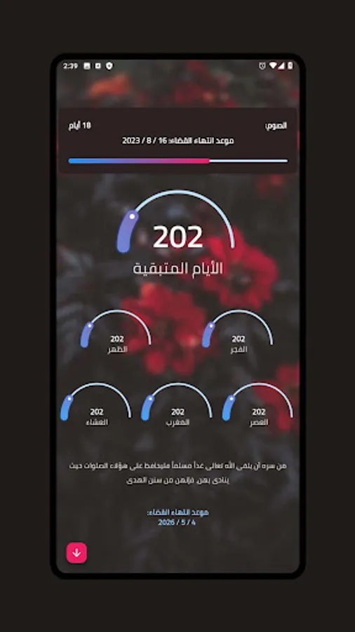 - A message that shows you the end date of making up missed prayers based on the number of prayers and the number of missed prayers per day.