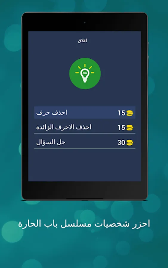 - The game contains riddles about the characters of the Bab Al-Hara series
