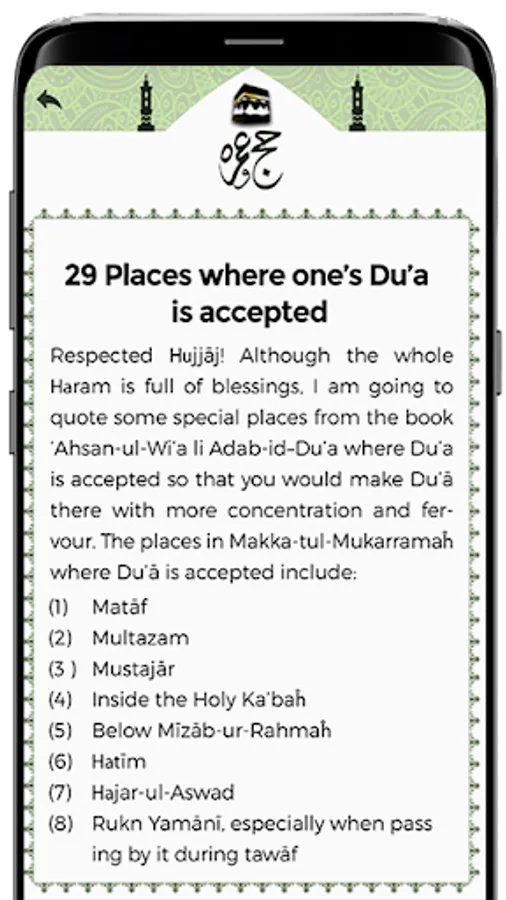 Including Arafat dua, people will have a list of all Duas during Hajj. They should know about the Holy places where we should make Dua.