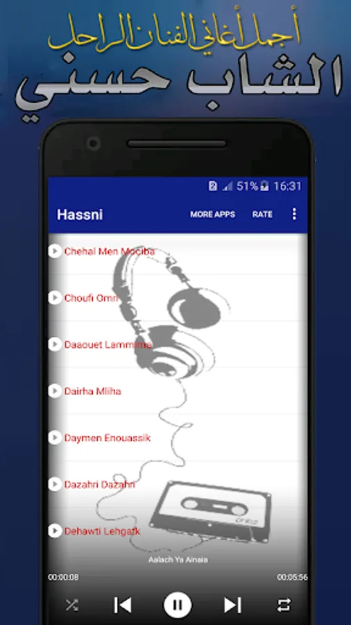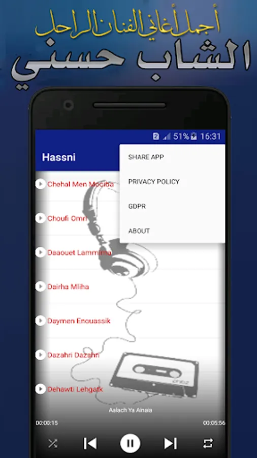 هدا التطبيق يتضمن أغاني الفنان الراحل الشاب حسني