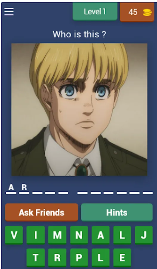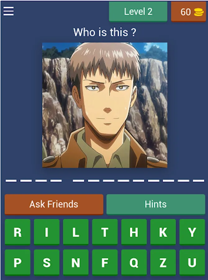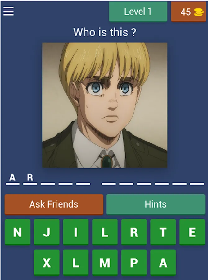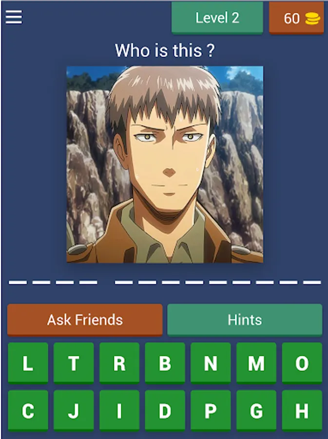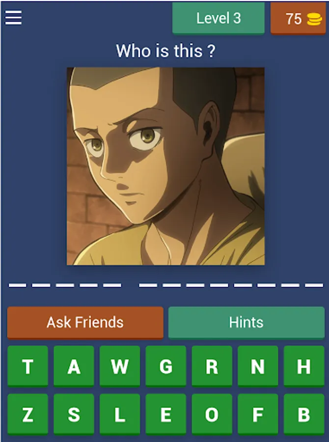 This game is a Quiz game about the characters of the anime Attack on Titan