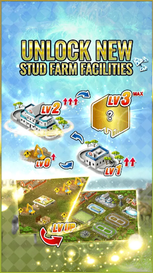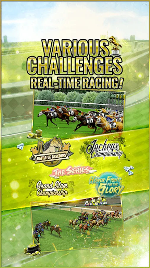 A game that allows you to nurture your own champion horses. Send your horses for international races and breed your own race horses. There're many brand-new gameplays for you to explore!