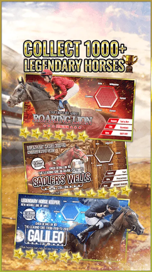Featuring 1,000+ legendary horses worldwide for you to choose from, with realistic statistics and characteristics, create the best and closest to reality horse racing experiences in game!