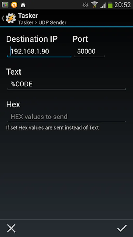 UDP Sender is a simple application to allow sending UDP packets either directly or, as I use it, by acting as a plugin for Tasker/Locale.
