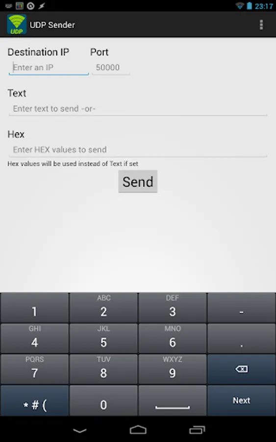 If you encounter any Issues please log them on Github (via https://github.com/hastarin/android-udpsender/issues) rather than giving poor reviews!