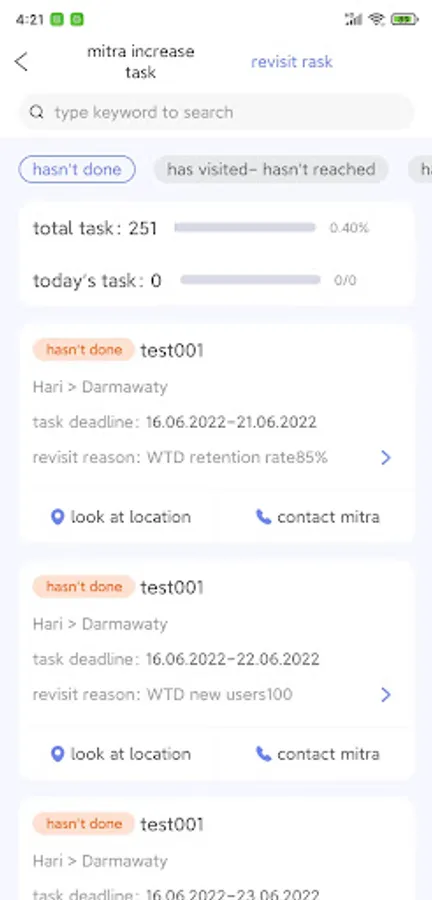- Work Table (consisting of Task Management and Visit Management), serves as the center for Hatata’s BD work reporting, in particular the reports on Mitra Increase Task (for new Mitra) and Revisit Task (for old Mitra).