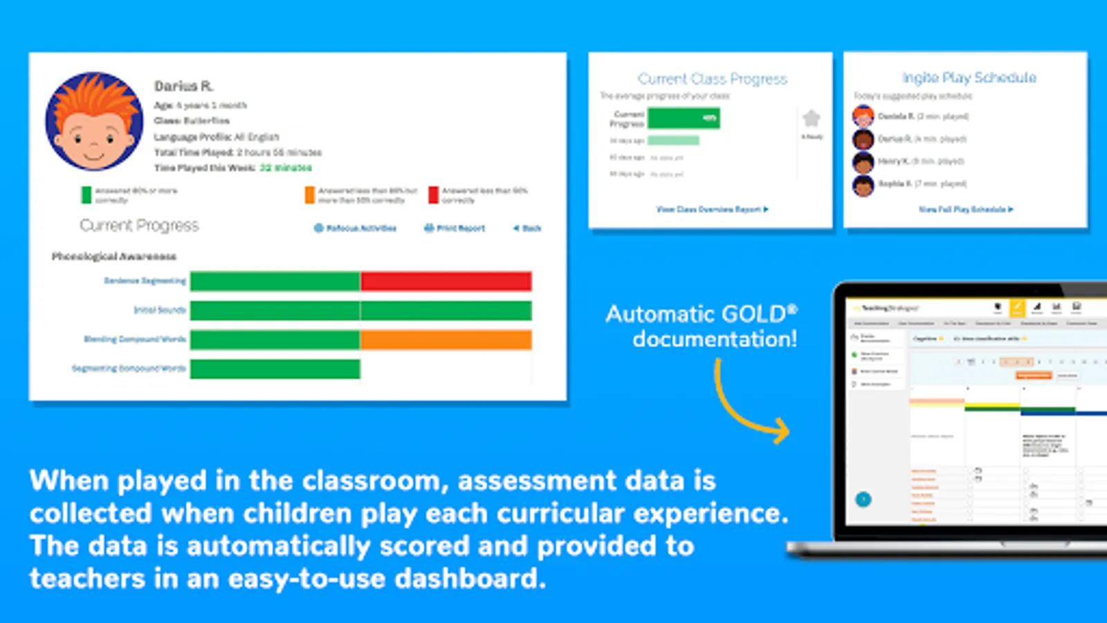 When used in the classroom, this adaptive platform enables teachers to view multiple data points on any given skill, ensuring valid and objective ratings. This accurate, instant data helps teachers to easily differentiate instructions and accelerate kindergarten readiness for all students in their classroom.