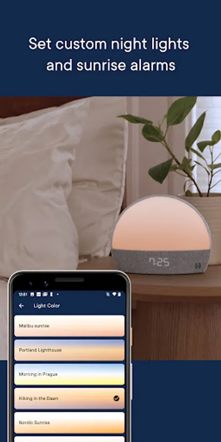 – Sunrise alarm. Gently wake up to your own sunrise, with light that gradually brightens before your alarm sounds.