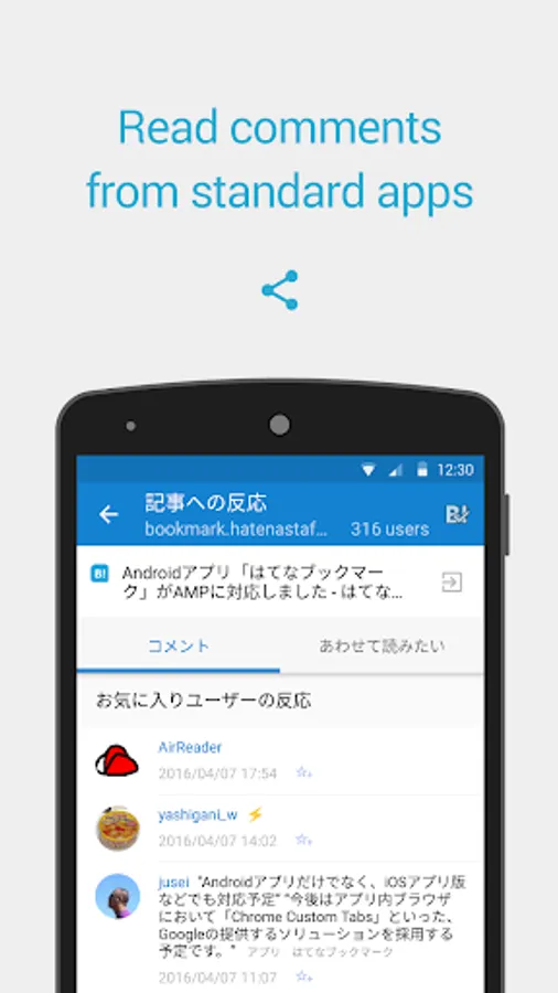 Save and share Japanese news, blogs, or any websites you like, and read them at your leisure.