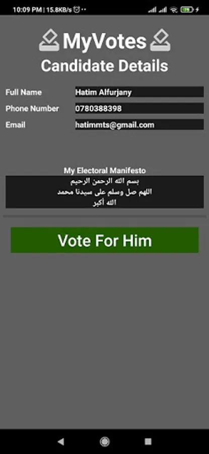 or as Voter he can choose a Candidate to vote to so his candidate would know who will vote for him and how many votes he could collect