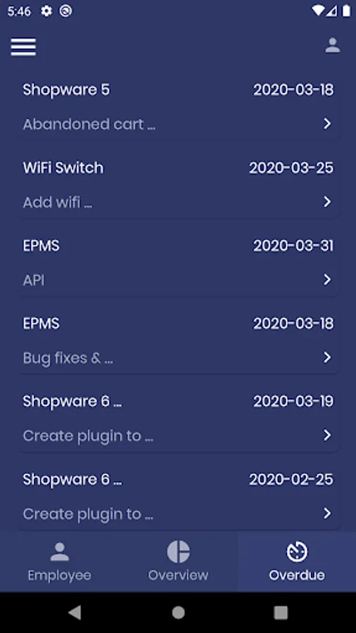 Managers can create projects and tasks to employees also see their current activities as well as timesheets.