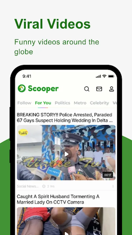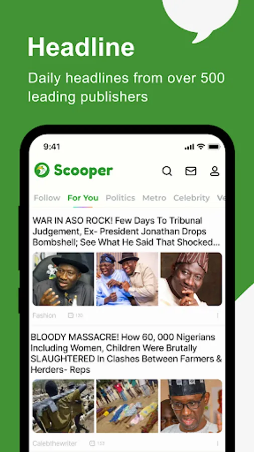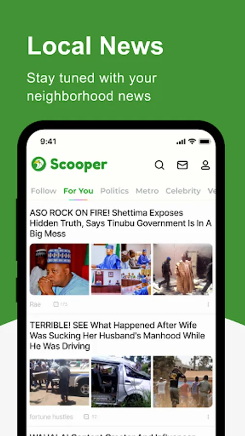 Scooper's contents are created and sourced directly from authoritative local content providers and news agencies. On Scooper, you will certainly find authentic stories, well written articles and breaking news.