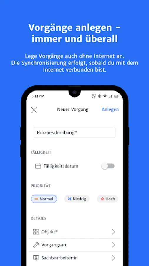 Time savings through mobile transaction managementMore efficient workflows through direct synchronization with the ERP systemBetter information base for facility managers and techniciansMore flexibility in recording transactions through the offline functionHigh data quality through direct comparison with the ERP system