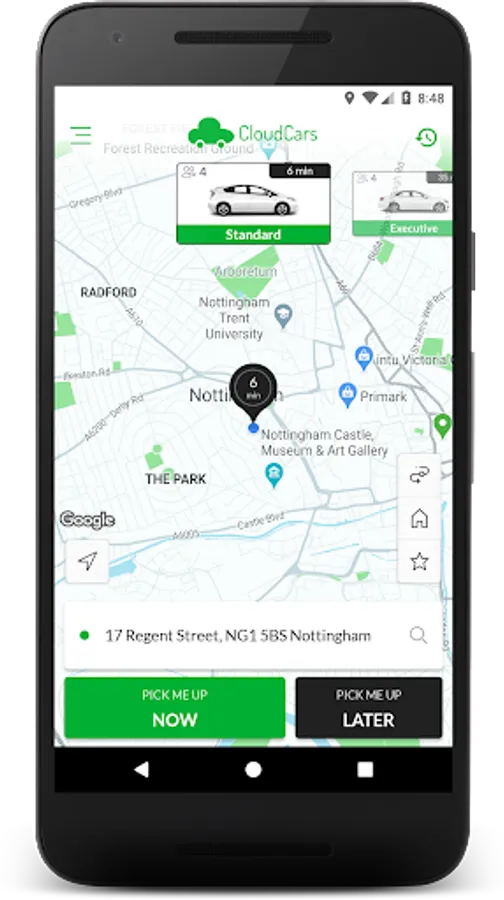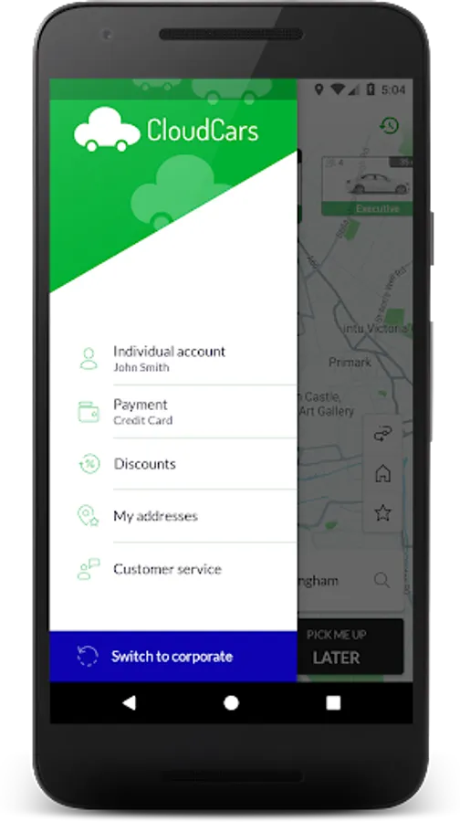 The Cloud Cars app allows you to book, pay for, and manage all your rides with a few taps.