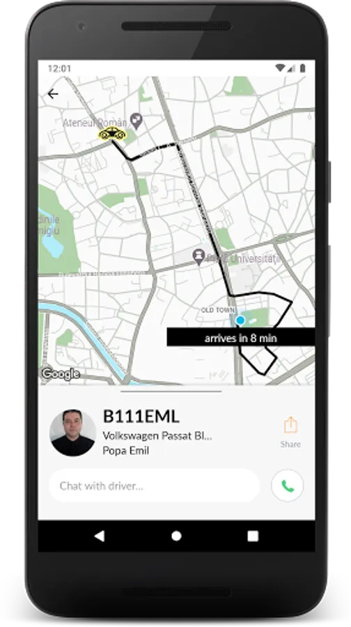 - GPS centralised system that allows you to track the driver’s arrival in the app;
