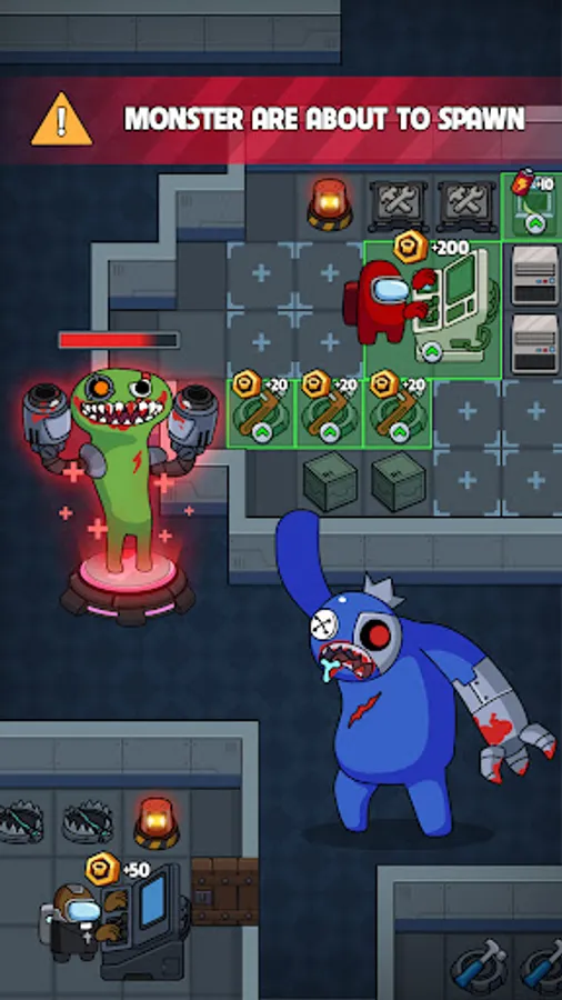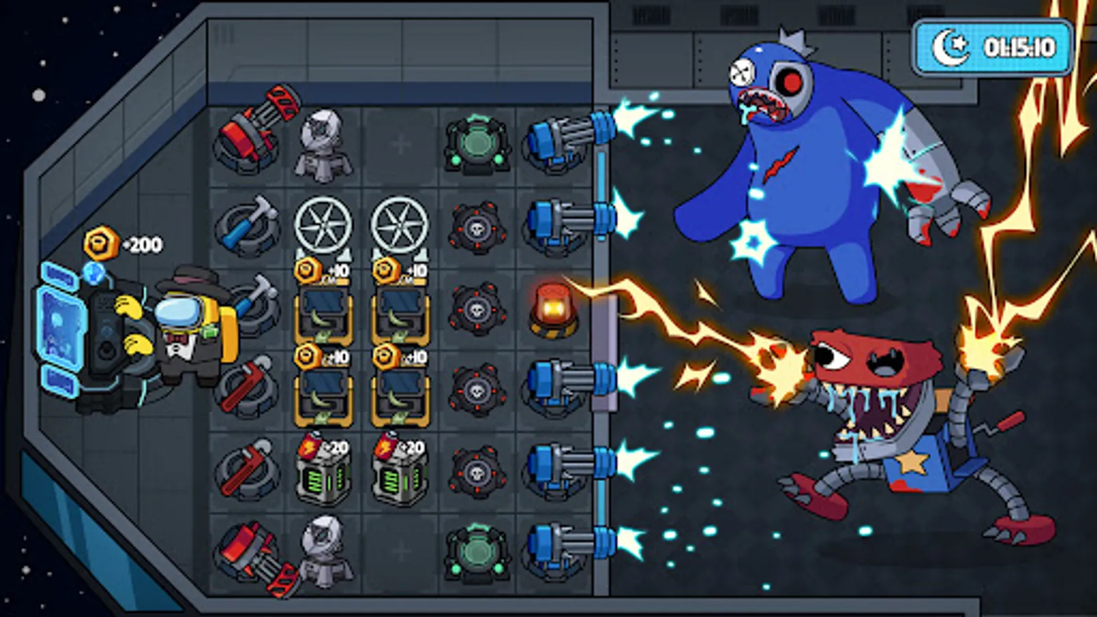 👾Tick-tock, tick-tock... the clock is ticking down. Choo Choo is haunting the Imposter. Let’s start the fight by finding an empty room, closing the door, and stepping on your cockpit to build a defense machine system and defeat monsters. Make use of your intelligence and tactics to collect as many coins as possible. Therefore, you can easily upgrade the door, equipment, and make Choo Choo and friends defeated.