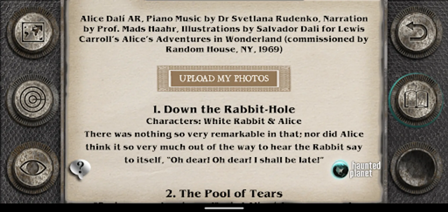 In 1969, Spanish surrealist artist Salvador Dali (1904-1989) was commissioned by Random House to illustrate a small, exclusive edition of Lewis Carrol’s “Alice’s Adventures in Wonderland” (1865). Dali painted 12 images for 12 chapters of the book. In this app, Dr Svetlana Rudenko composed on Art images of Dali and Prof. Mads Haahr narrated the text. The app places the 12 art, music and story encounters around you geographically using augmented reality and lets you find them in an exciting art and music treasure hunt.