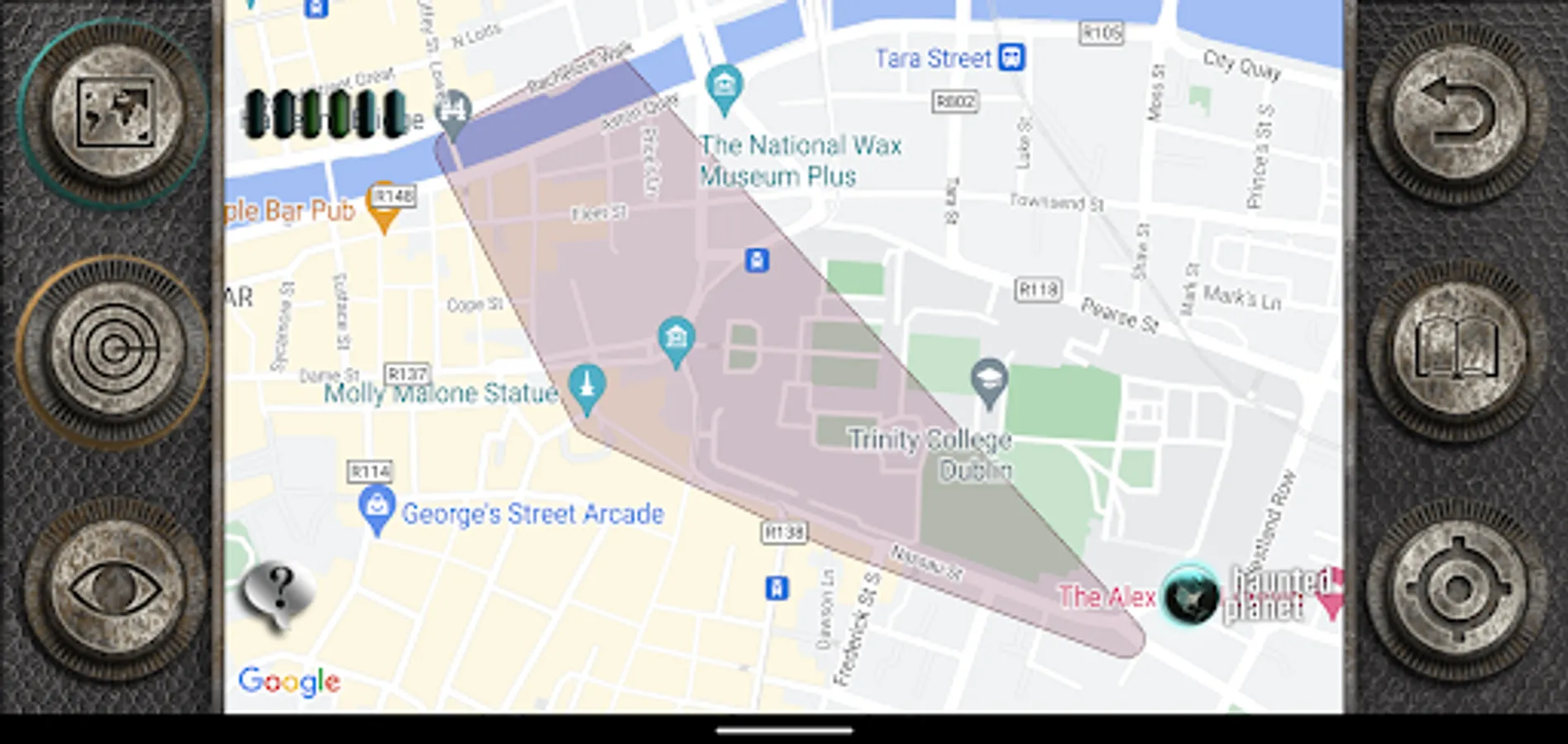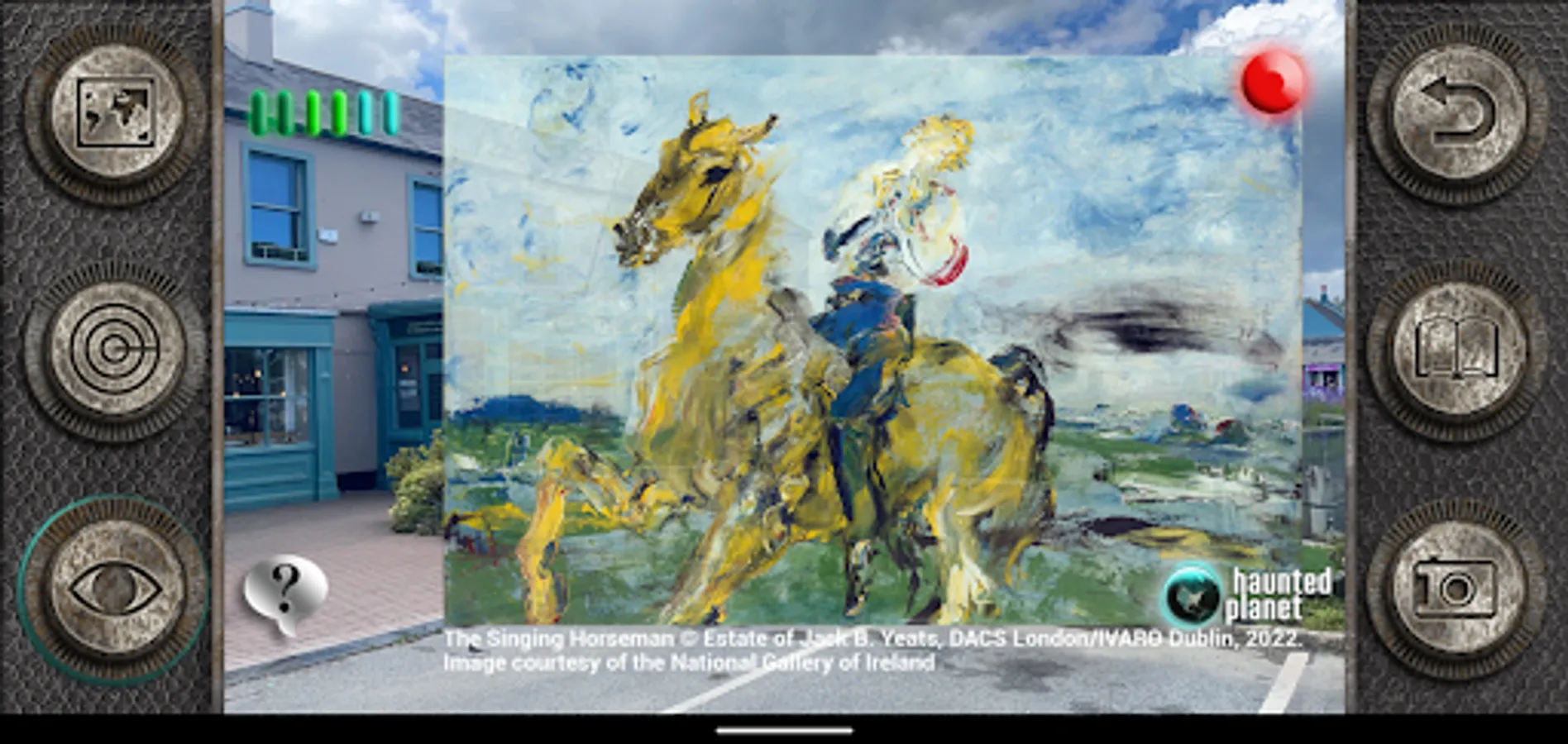The app has two modes: site-specific and random. In site-specific mode, the experience is set in Dublin, Ireland. In random mode, it will stage itself to any location in the world, e.g., a park.