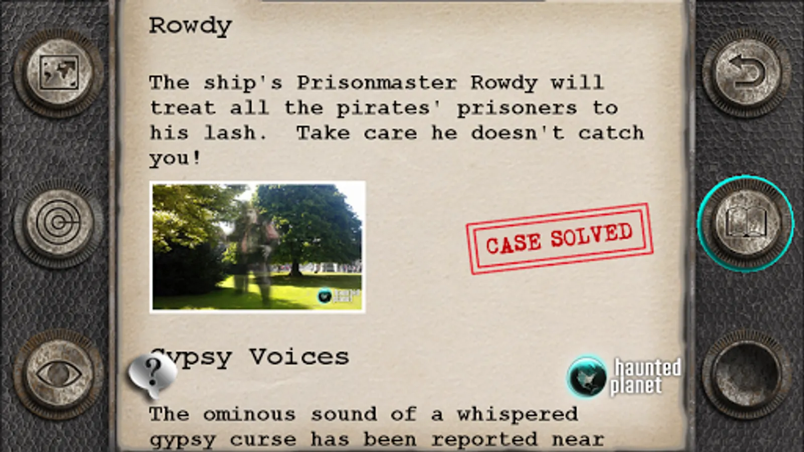 The Pirates of Emerson Ghost Hunt is an outdoors game that turns your smartphone into a spooky paranormal detection device. First use the Radar to scan for mysterious phenomena and get close to one, then scan for it using the Viewer and take its photo. Find all the paranormal activity to complete the game. Be prepared for surprises! The audio is great and works best with headphones, but you can play without headphones too. Works best in an open area, like a forest or a park - or in Alameda County Fairgrounds!