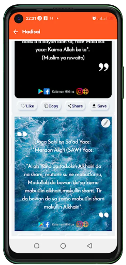 Manhajar Kalaman Hikima tana kunshe da bangarori da yawa a cikin ta. Zaka samu dubannin gajerun maganganu da suka hada da hadisai, ayoyin Alqur’ani, Kalaman Hikima daga manyan malaman musulunci da sauran gajerun maganganu na fadakarwa, wa’azantarwa da tunatarwa akan addinin Musulunci. Duk domin dorawa a kafofin sada zumunci na zamani kamar Facebook, WhatsApp, Twitter, Instagram da sauransu.