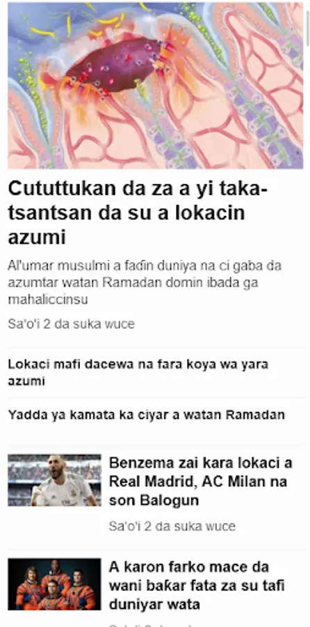 Baya ga shirin talabijin kai tsaye, manhajar tana ba da zababbun zababbun labaran labaran Hausa na duniya. Daga faɗakarwar faɗakarwar labarai zuwa labaran abubuwan da ke da zurfi, masu amfani za su iya samun dama ga kewayon abun ciki akan batutuwa iri-iri. Ko kuna sha'awar siyasar duniya, wasanni, nishaɗi, ko lafiya da kimiyya, app ɗin yana da wani abu ga kowa da kowa.