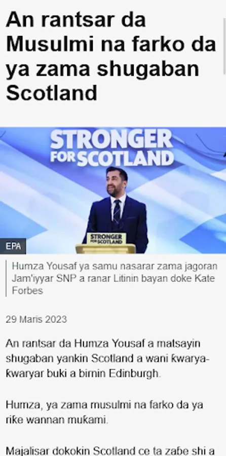 The BBC Hausa News App is a comprehensive news application that offers a wide range of features to keep you up-to-date with the latest news and events from Nigeria, Ghana, Cameroon, Benin and Togo, the southern half of Niger, Chad and Sudan and around the world. The app offers a smooth and easy-to-use interface, making it simple for users to navigate and find the news they are interested in.