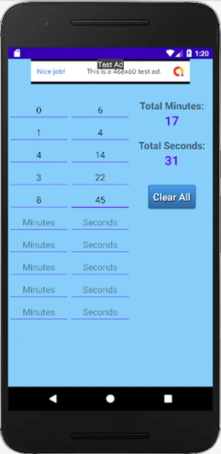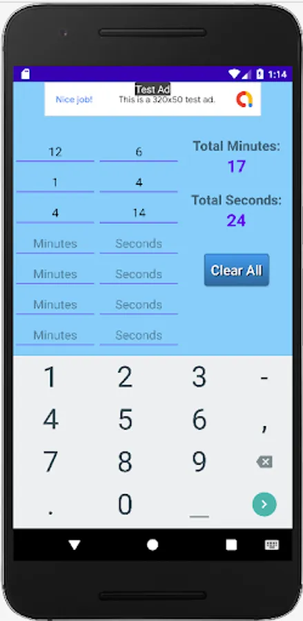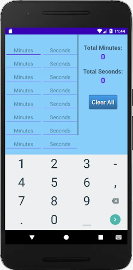 Time Adder will allow you to add up the minutes and seconds of (up to) ten durations while displaying the running total the whole time.