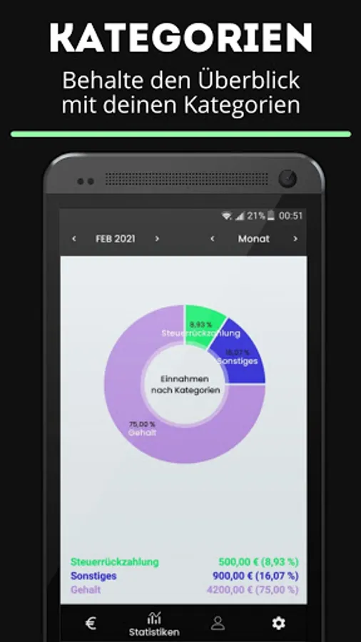 Our monthly overview gives you an overview of how much you have spent on what on which account.